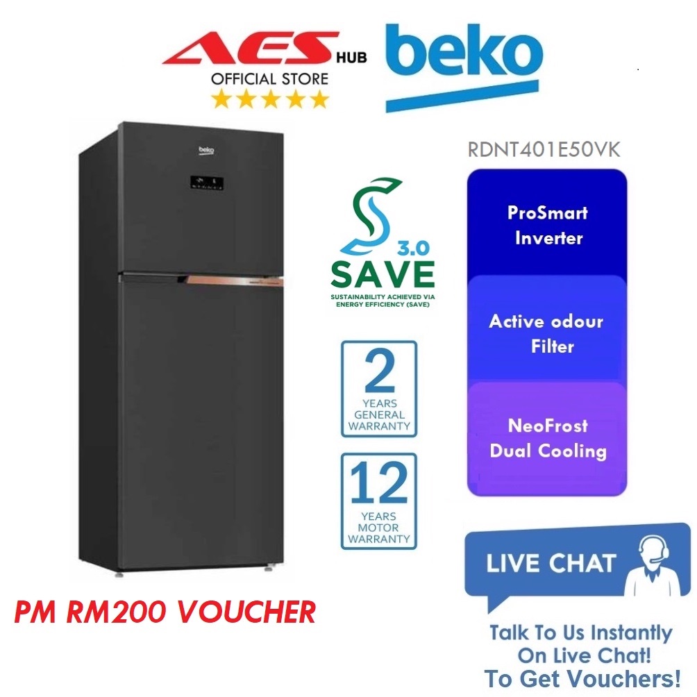 Save 3 0 Beko Inverter Refrigerator 409l Gross 2 Door Fridge Top Freezer Peti Sejuk Peti Ais 2 Pintu 冰箱 Rdnt401e50vk Shopee Malaysia